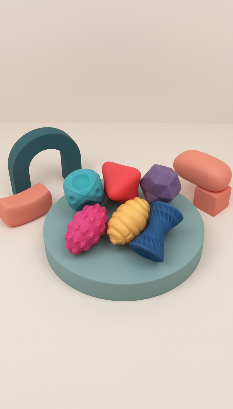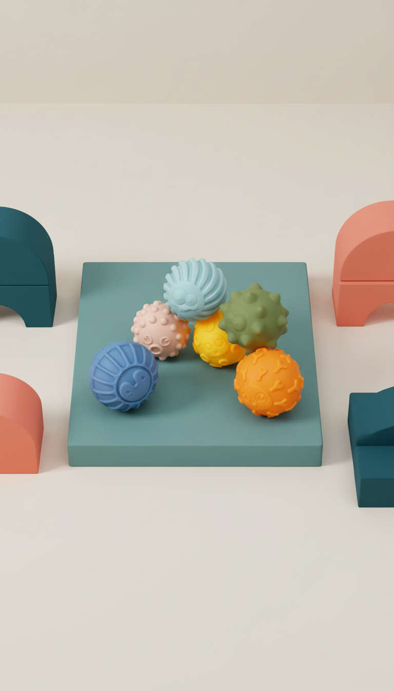 - Texturas variadas: Cada bola possui textura diferente para exploração sensorial