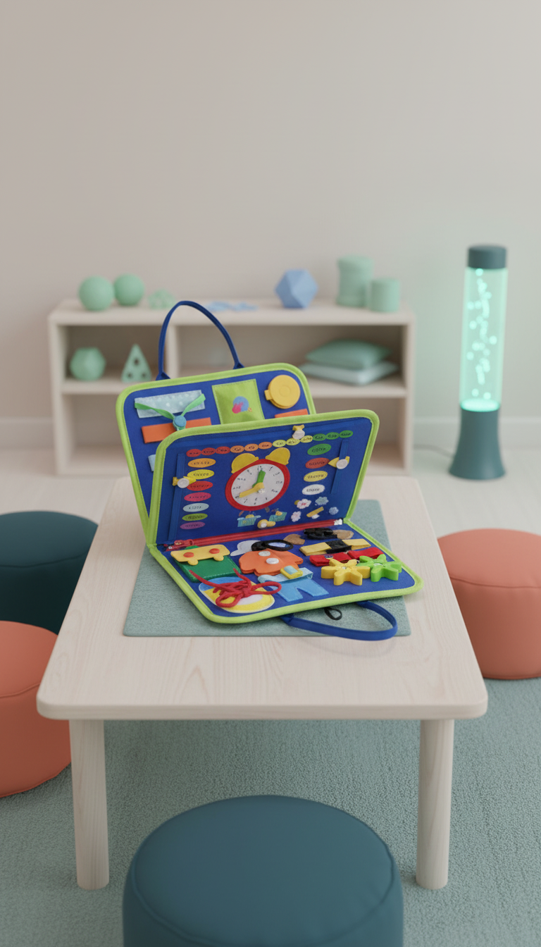 - Estimulação Sensorial Tátil: Diferentes texturas, fechos e materiais oferecem experiências sensoriais variadas