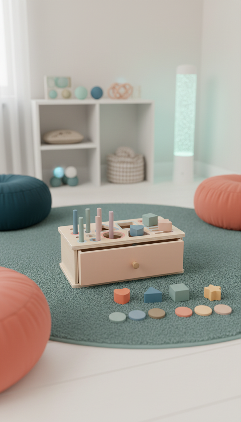 Caixa de Permanência de Objeto Montessori para Desenvolvimento Motor e Cognitivo