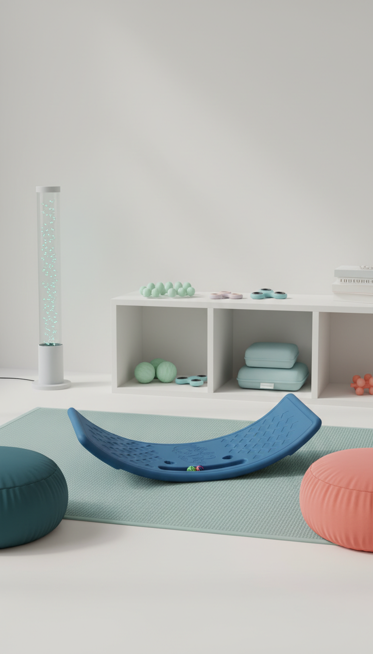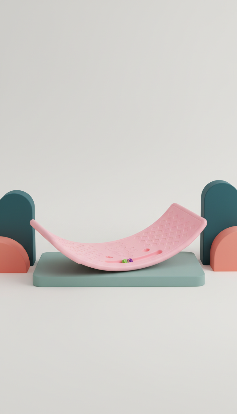 Esta prancha de equilíbrio se destaca pelo design curvo cientificamente projetado que incentiva movimento natural de balanço. Diferente de pranchas planas, a curvatura proporciona estímulo proprioceptivo constante, mantendo o sistema sensorial ativo durante todo o uso.